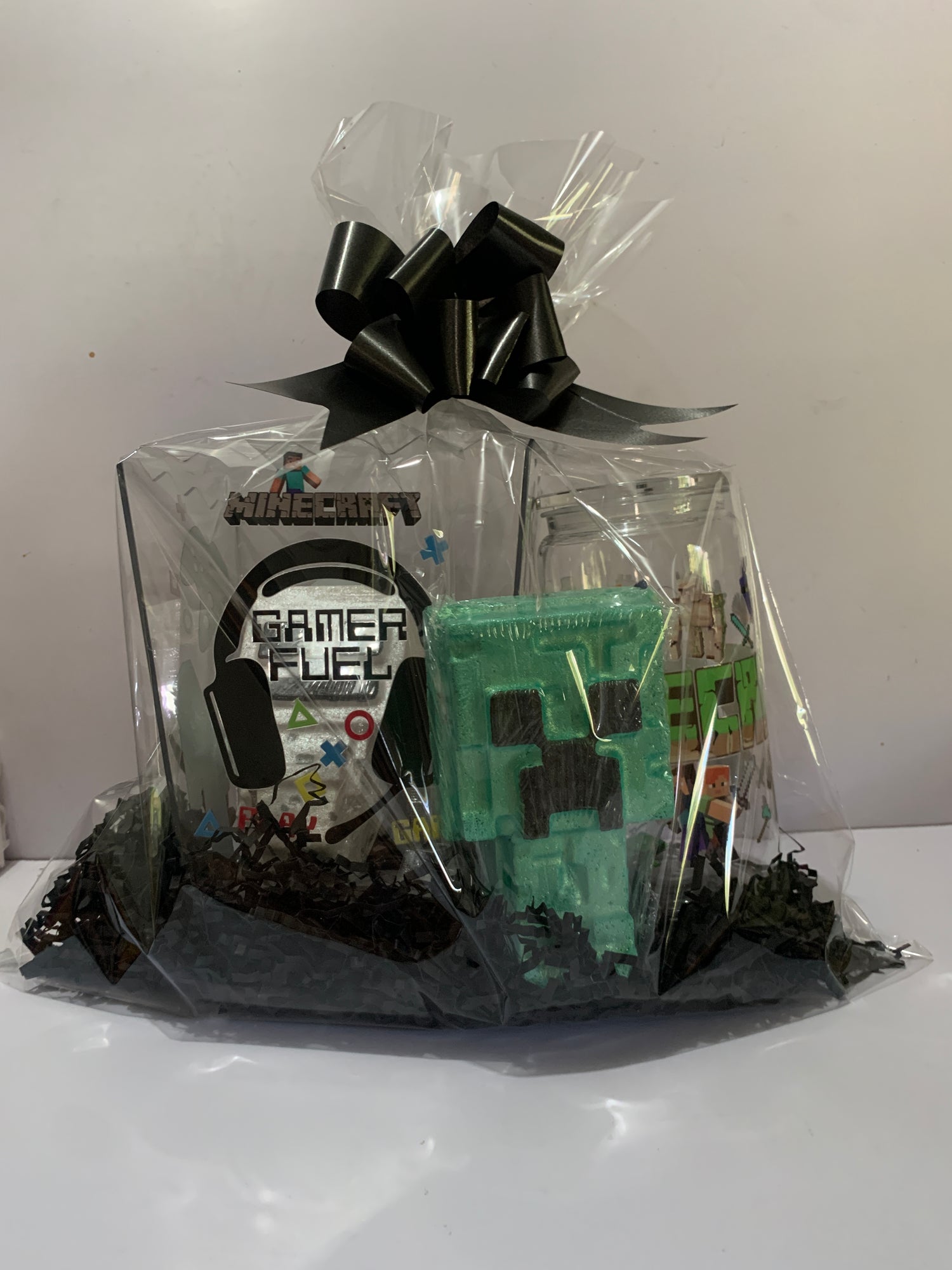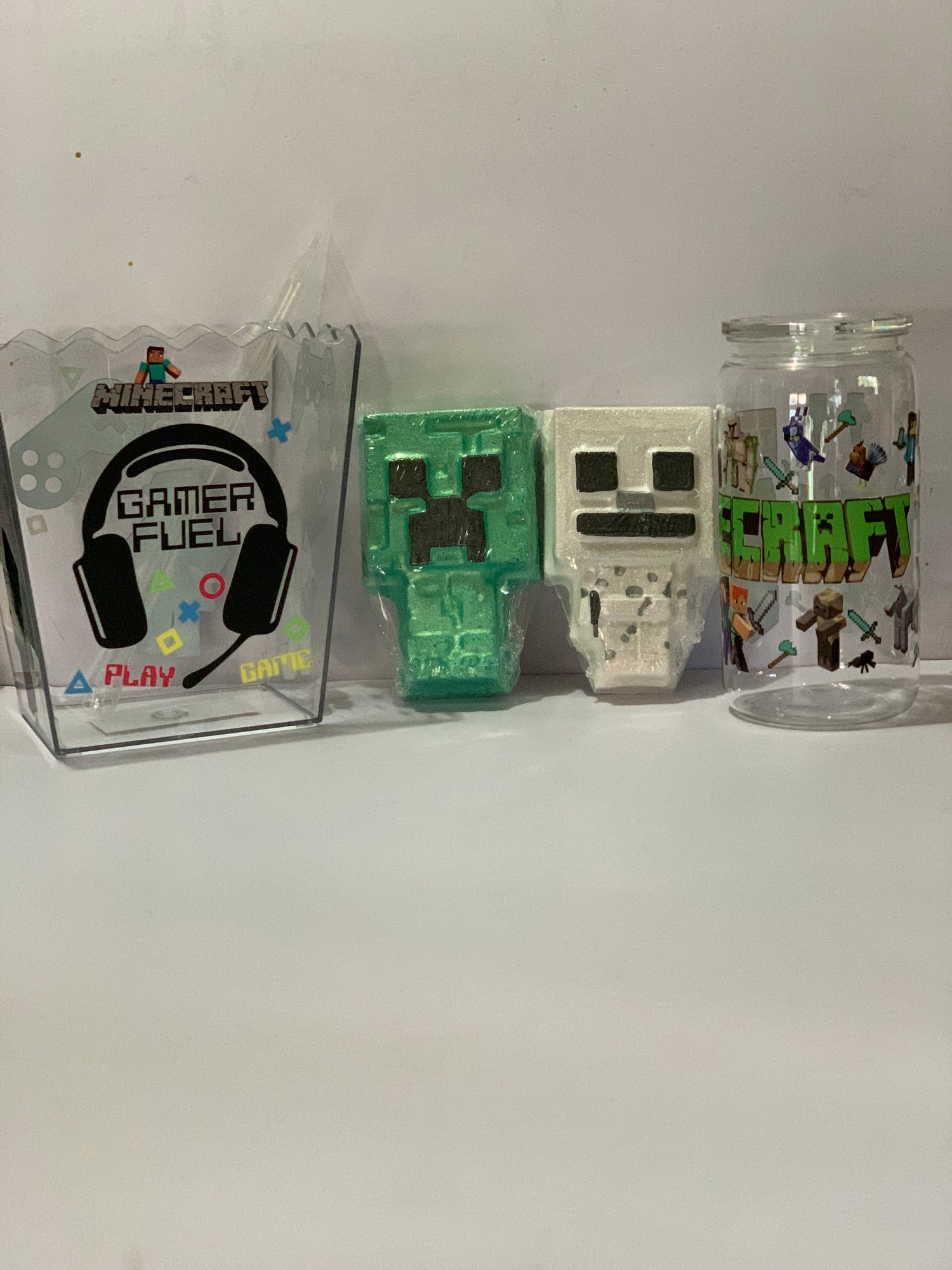 Elevate your gaming experience with our GAMER GIFT PACK. Indulge in a relaxing bath with our MINE CRAFT BATH BOMBS featuring your favorite CREEPER and SKELETON characters. Stay hydrated during long gaming sessions with our 16OZ ACRYLIC TUMBLER and don't miss a second of the action with our convenient POPCORN HOLDER. A must-have for any gaming enthusiast, providing hours of fun for the whole family